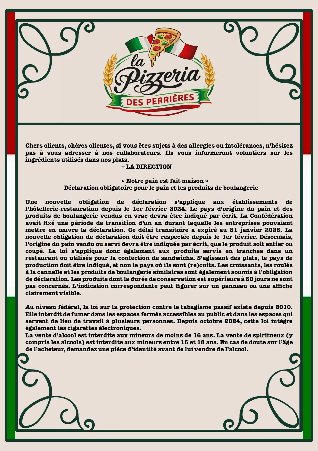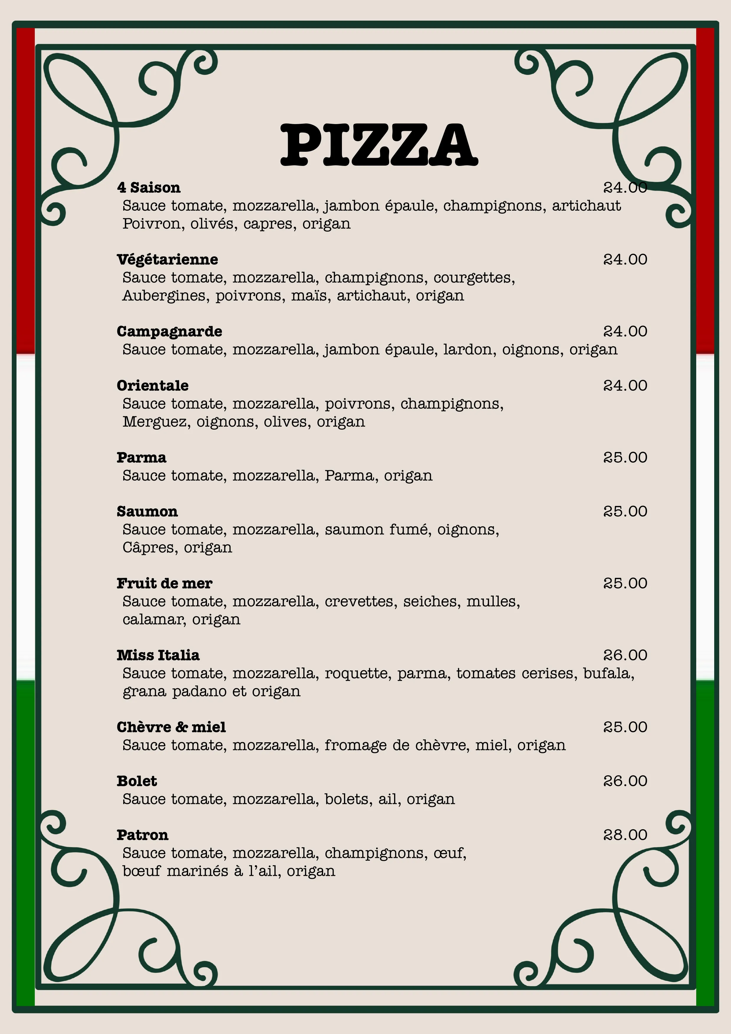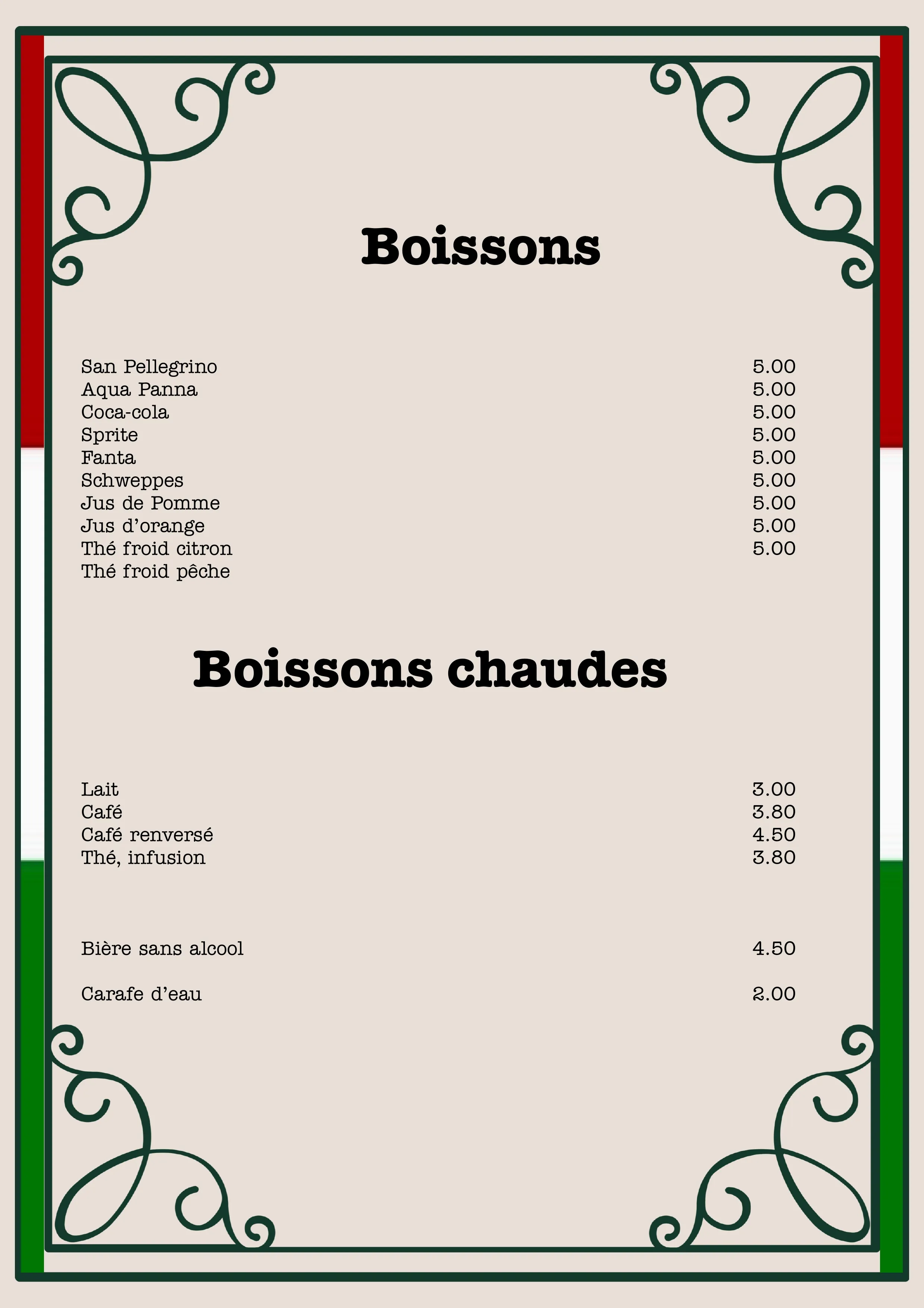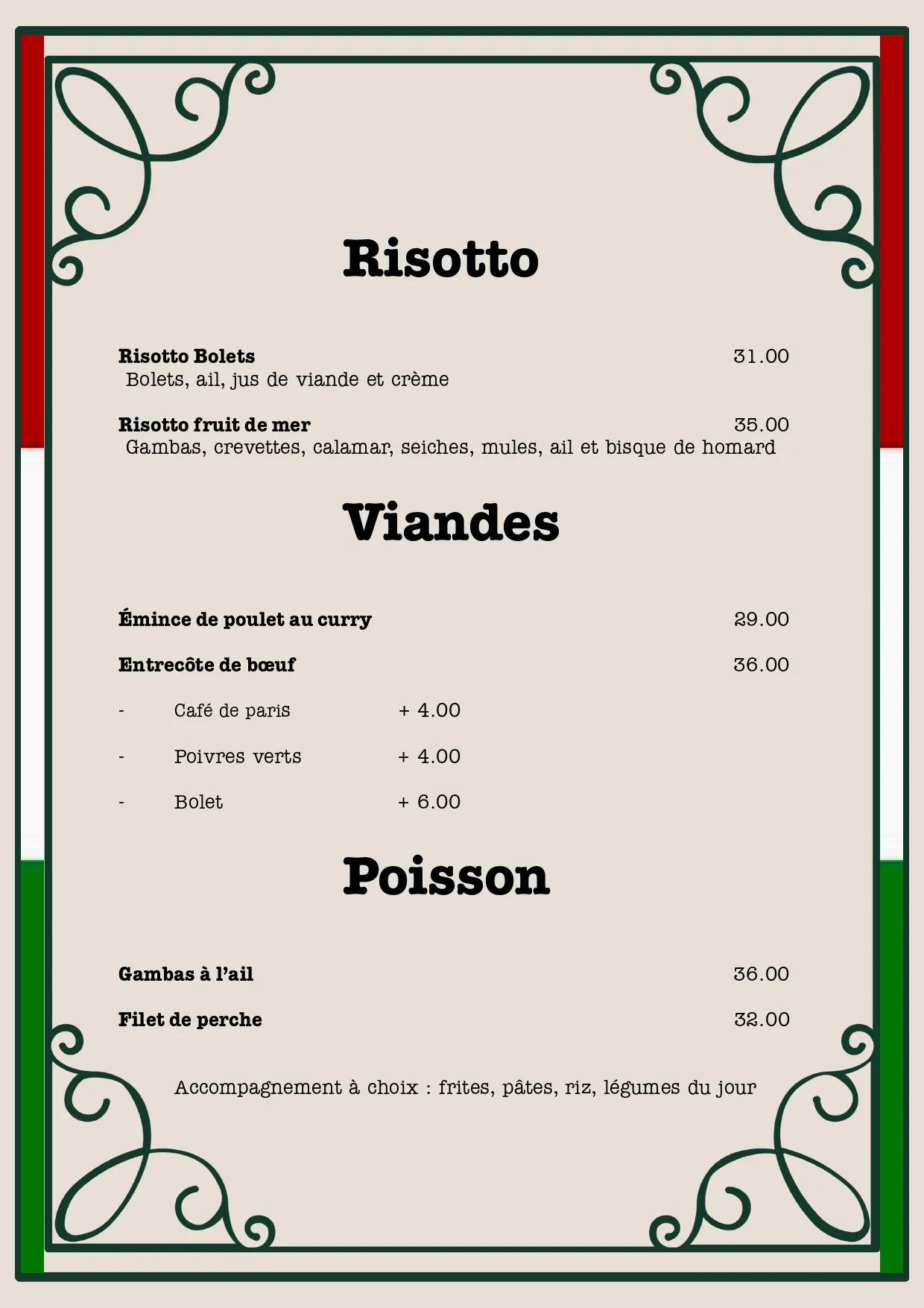 Prenez votre temps et explorez notre menu. Lorsque vous êtes prêt, appelez-nous pour passer votre commande.